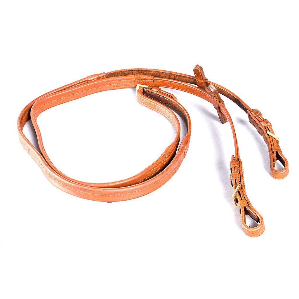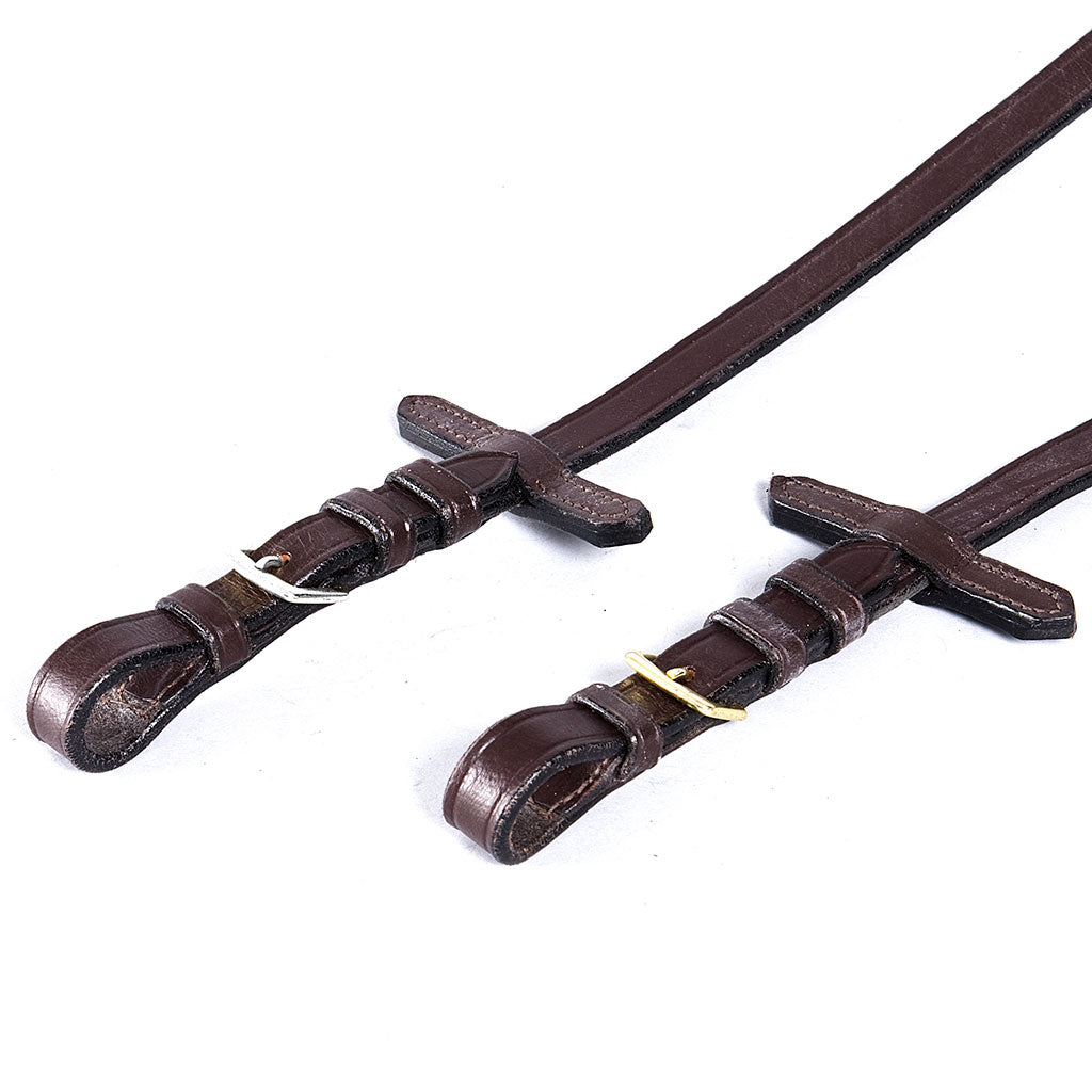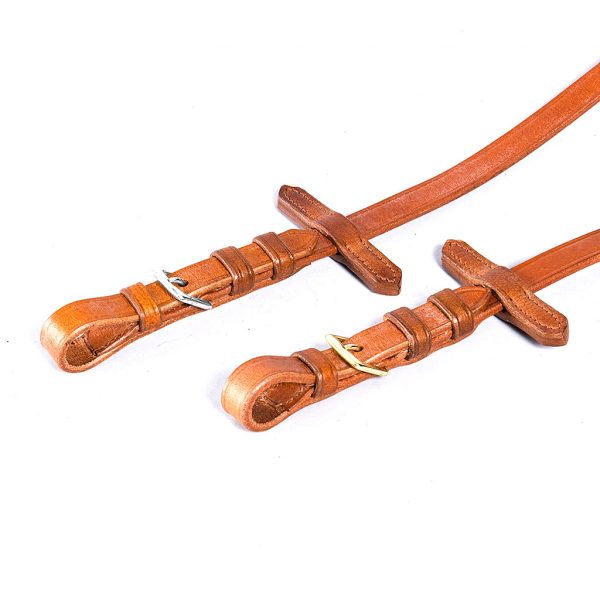 20 mm breda tyglar tillverkade av slätt gummi runt en nylonkärna vilket ger både smidighet och gott grepp. Har även läderändar samt martingalflugor av läder. Alla läderdelar är tillverkade av buffelläder. Beslag i rostfritt stål alternativt mässing.